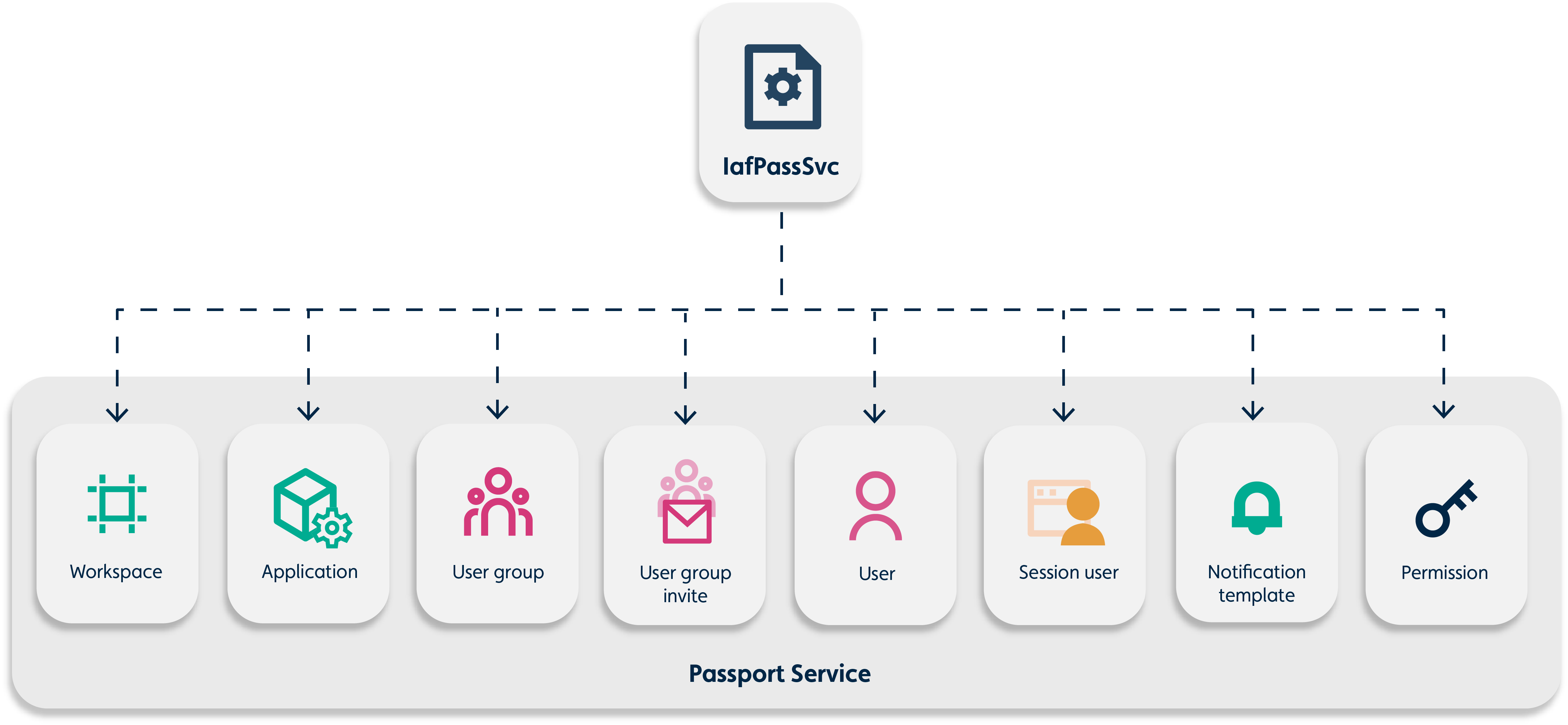 Use the IafPassSvc API to create and manage the following resources in the passport service: