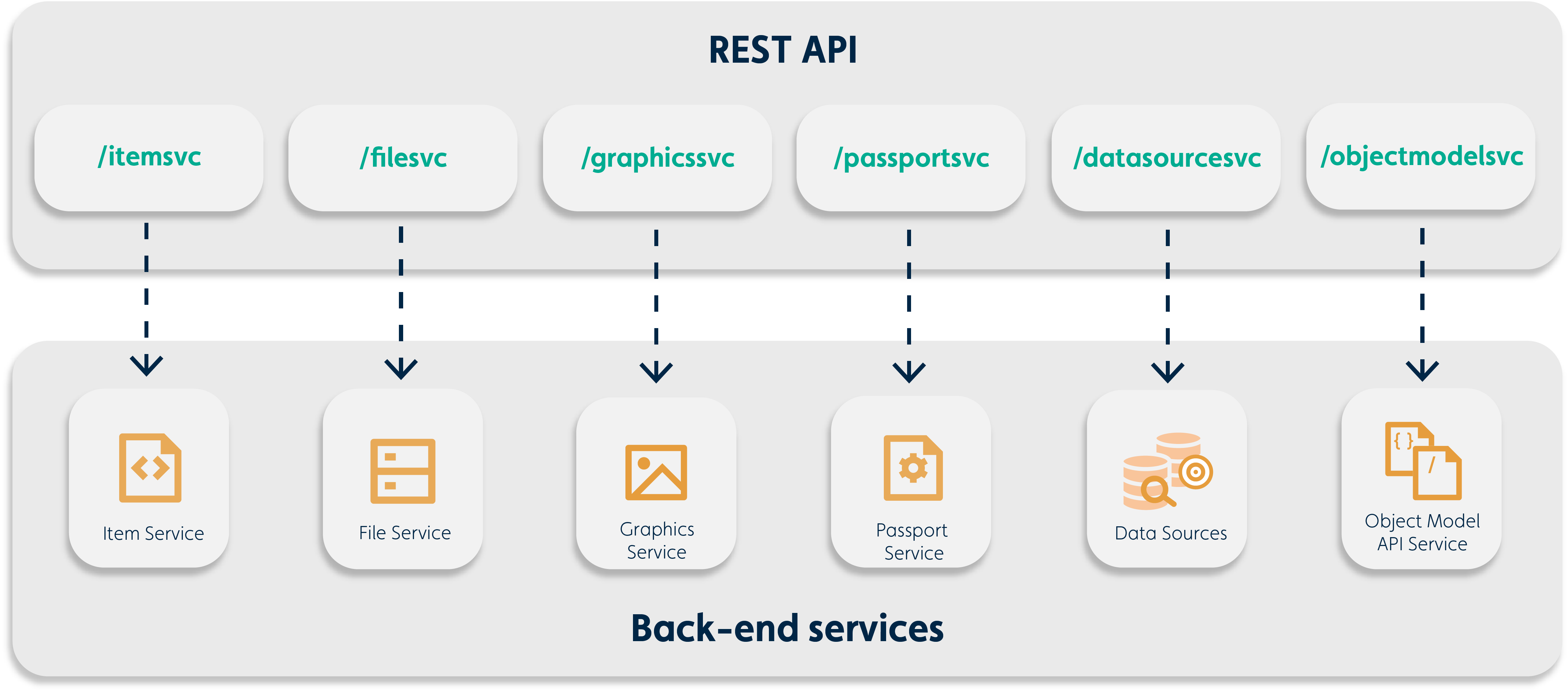 | Object model API service | Manage API config files and their permissions in the Object Model API service. | /objectmodelsvc |