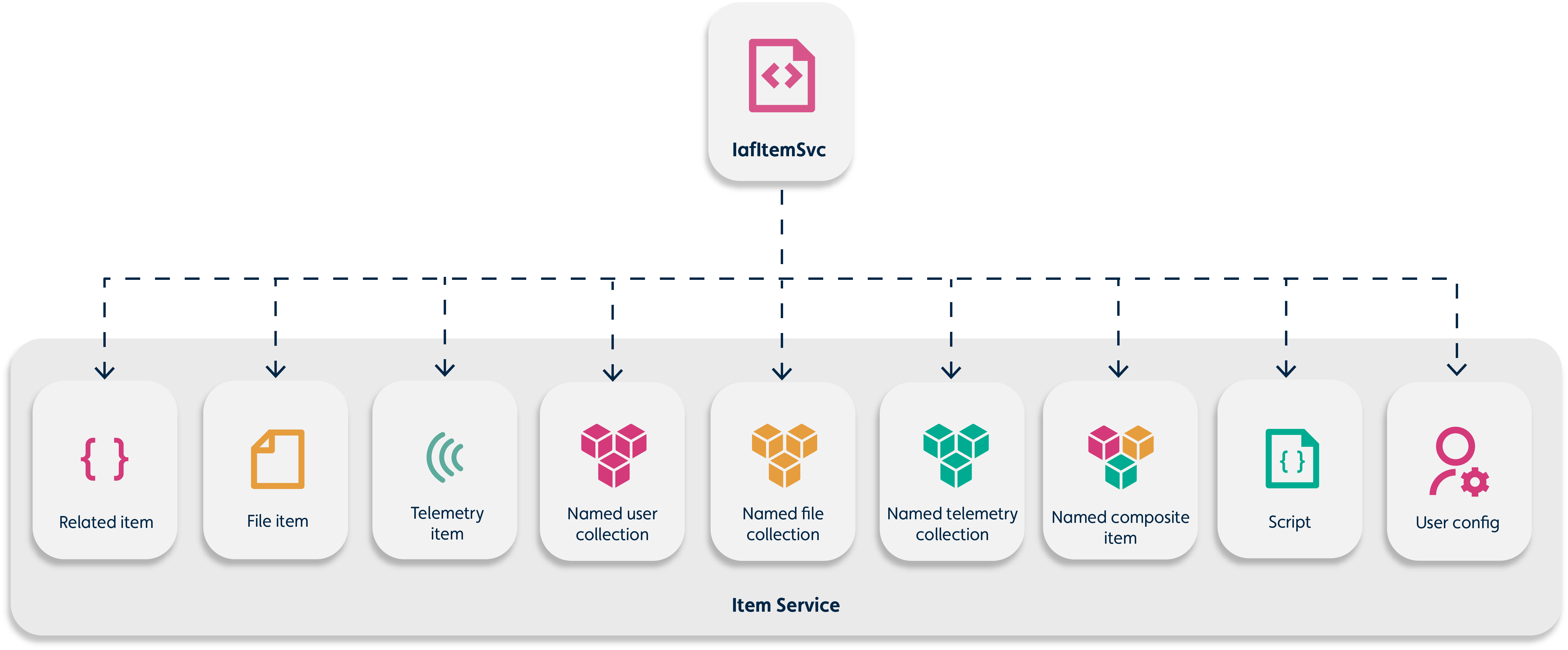IafItemSvc is a JavaScript API that you can use to create and manage item service resources in the item service.