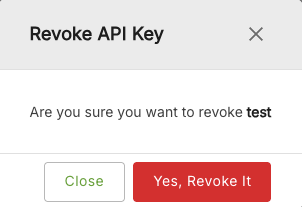 Click the Revoke option to revoke API key access for a particular user. You will be prompted to confirm that you want to revoke the API key.