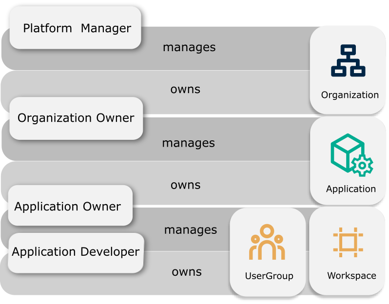 Organization OwnerPlatform ManagerApplication OwnerApplication DeveloperApplication Users