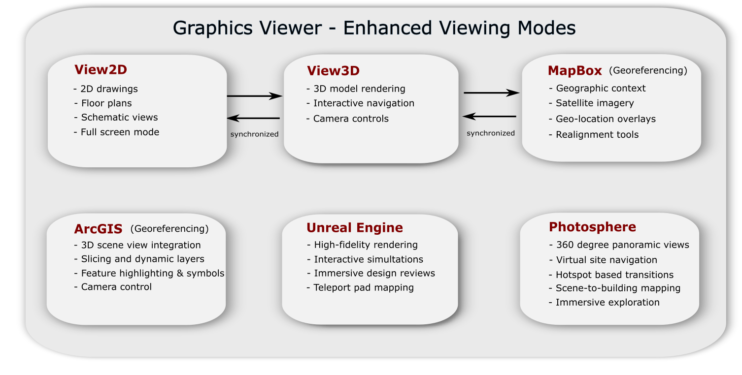 | Unreal Engine | High-fidelity rendering, pixel streaming, interactive simulations, immersive design reviews, teleport pad mapping |