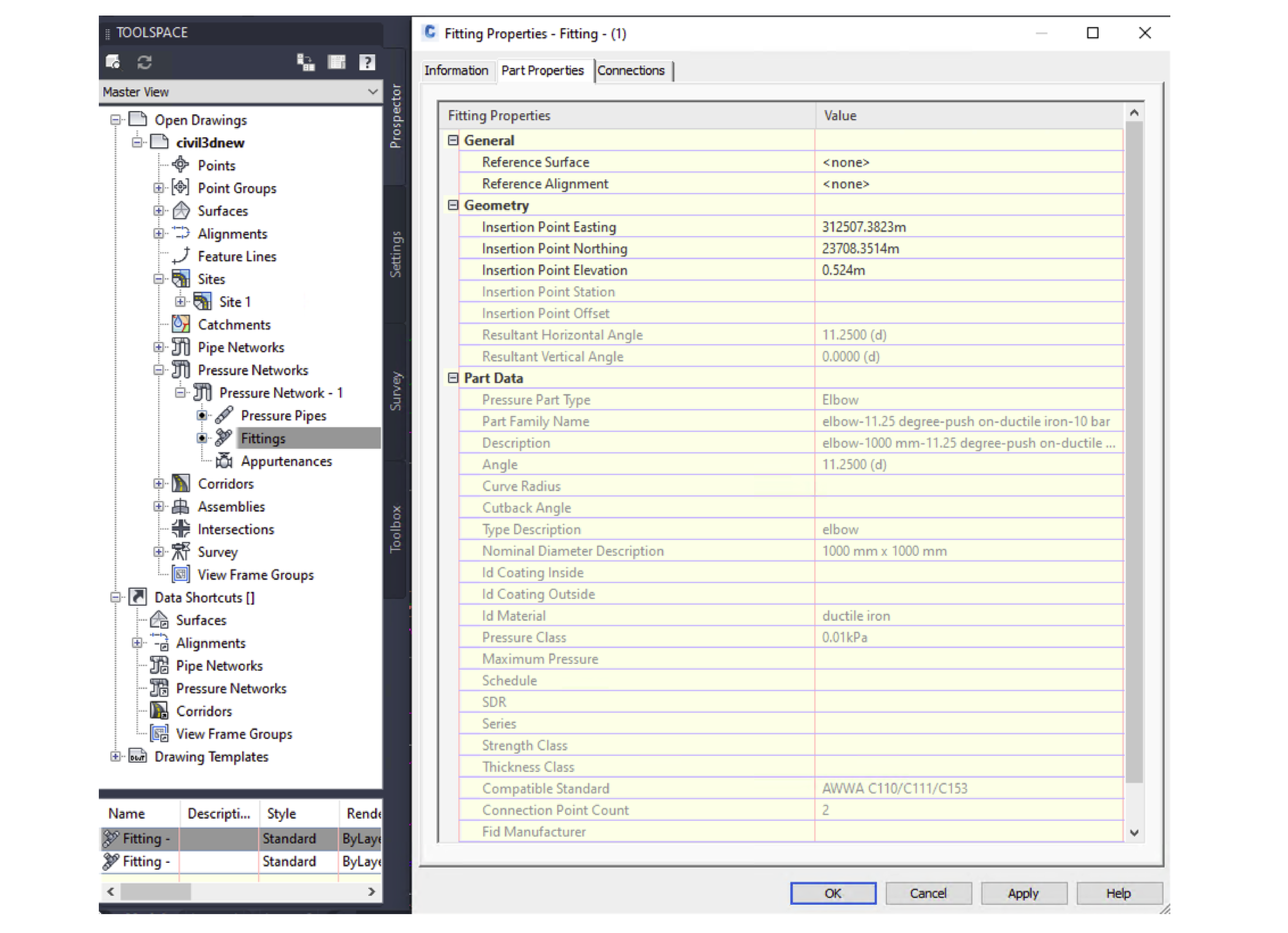 The plug-in also exports the following data in the Fitting Properties - Fitting window, on the Part Properties tab: