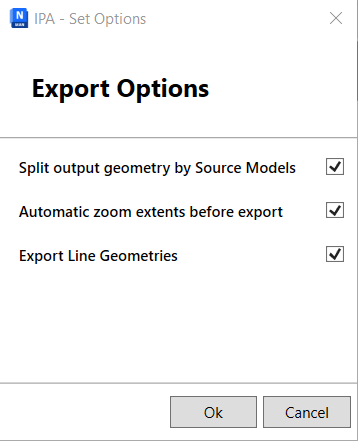 - The Export Options dialog will appear. Select export options as required. Please refere to Notes on export options below for more information.