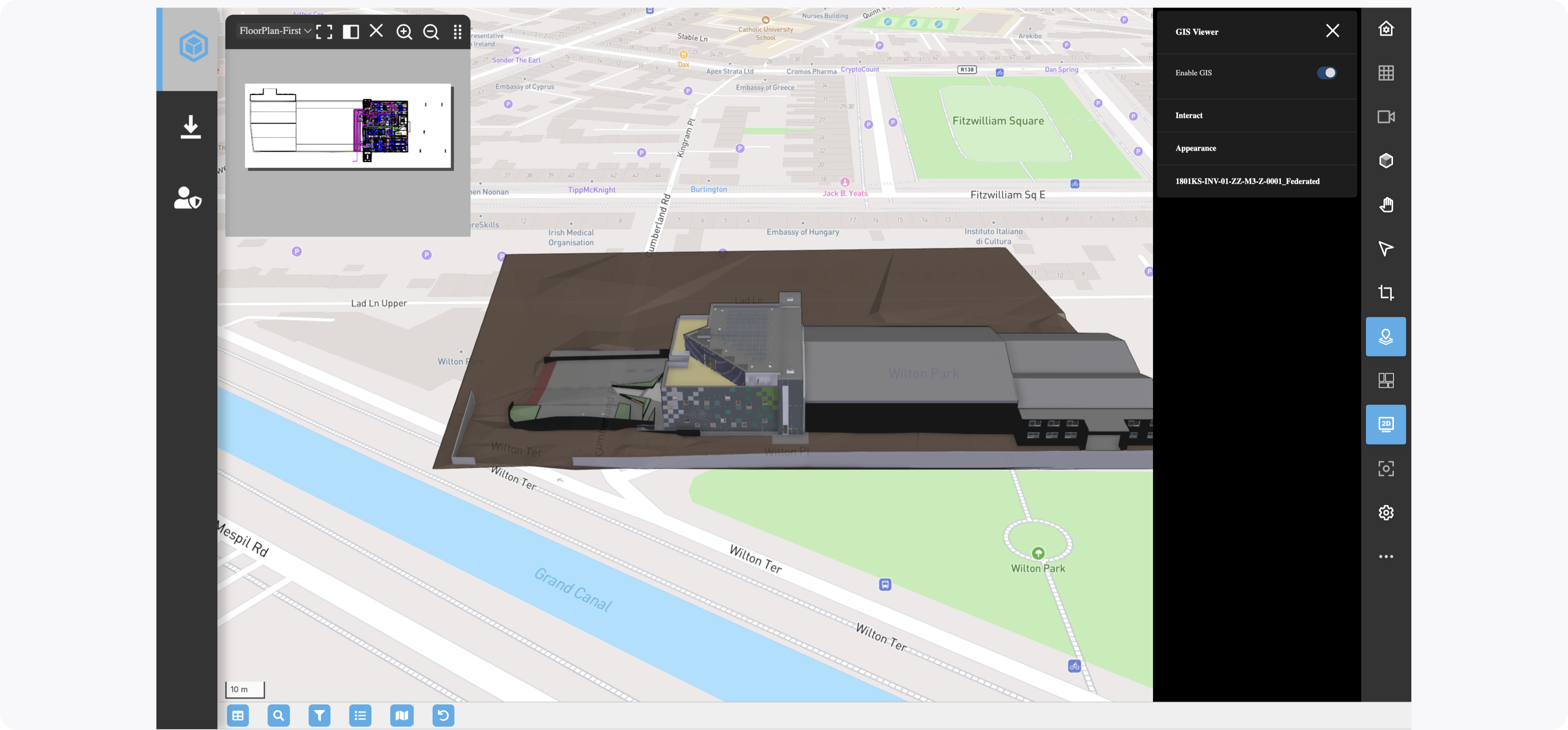 In the IafViewer, you can view your building model on a GIS map, using Mapbox.