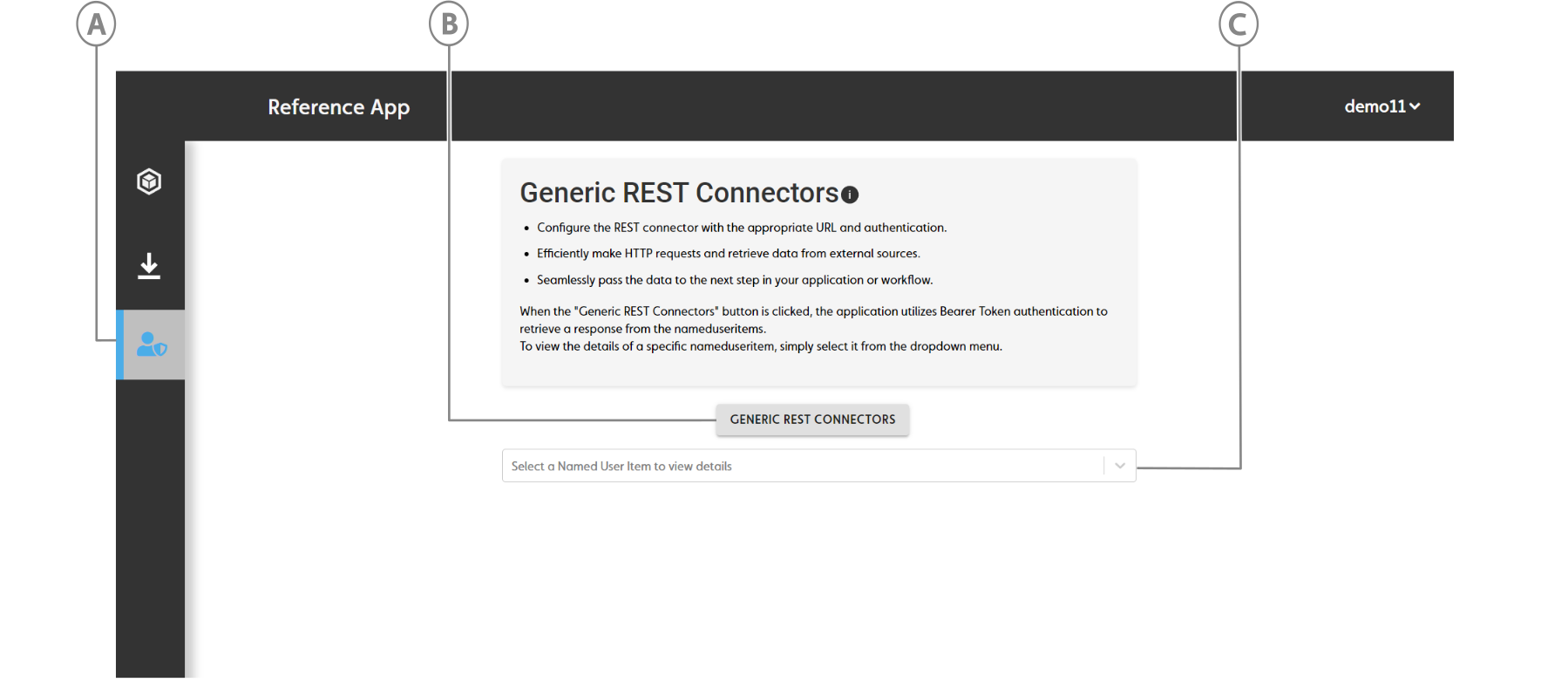 | B | REST CONNECTOR button | Click to trigger an API that runs your REST connectors. |