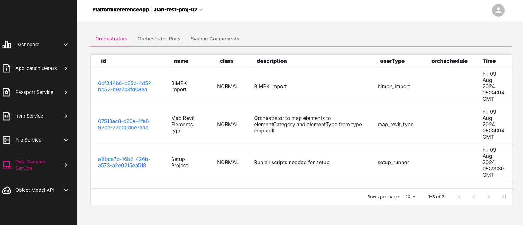 The Data Sources Service provides a list of orchestrators and orchestor runs, and provides other information on system components.