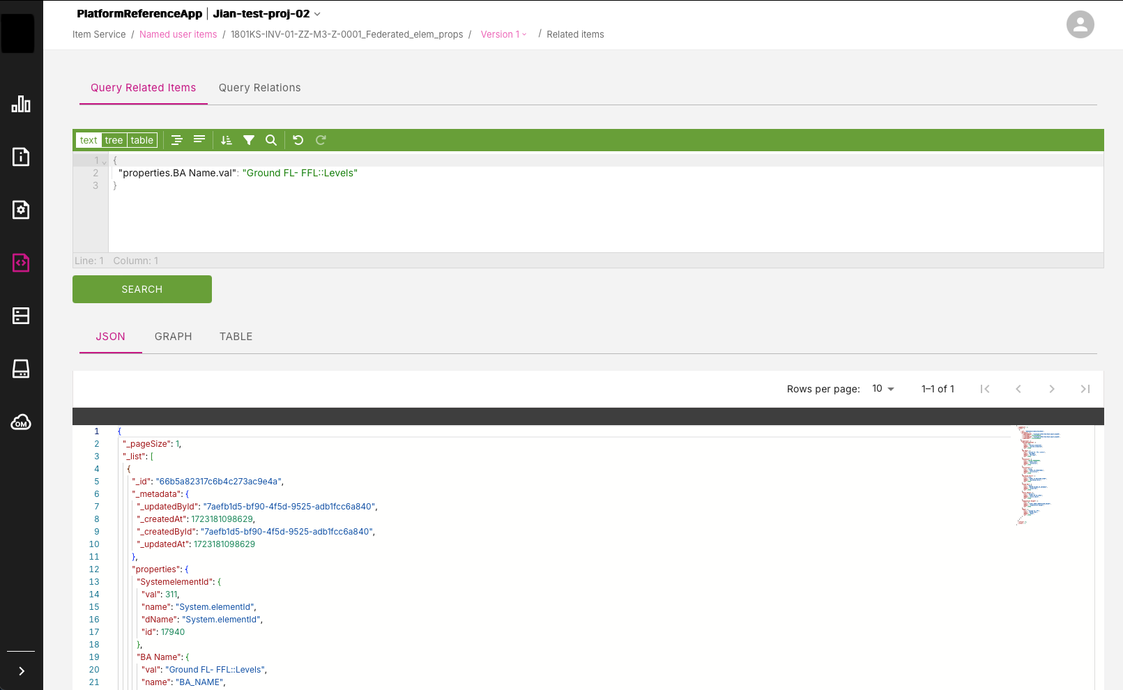 { "properties.BA Name.val": "Ground FL- FFL::Levels"}Figure: Example MongoDB query and JSON result