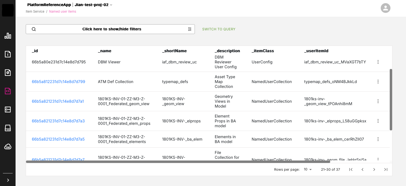 Console App version 3.0 introduced new query functionality to the Item Service Console. After you select a particular application, you will be presented with a list of item classes. For certain item classes, you can now click on an entry in the _id column and drill-down to the new Related Items Query page. This new page allows you to run a range of queries depending on that item type.