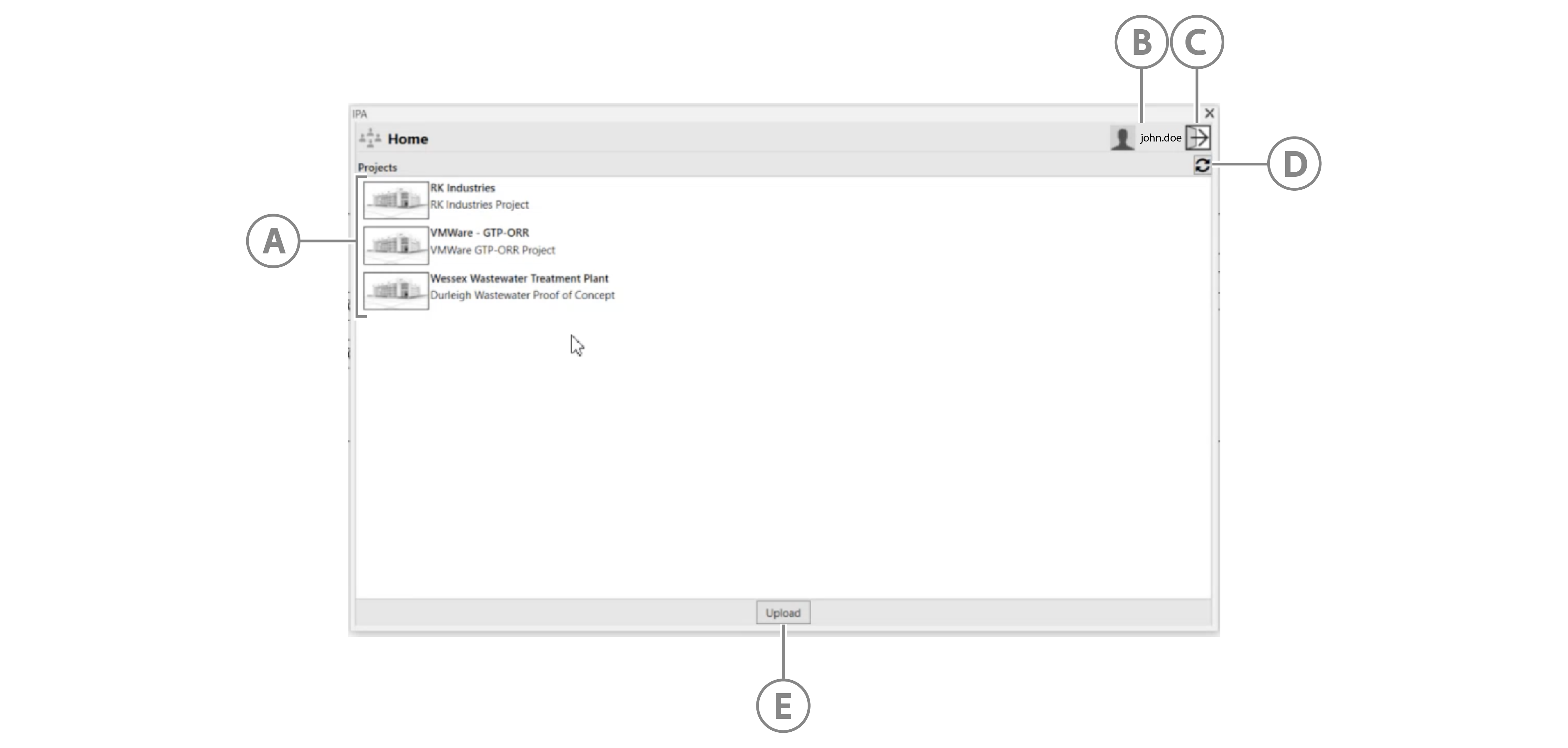 | A | Revit projects | Displays your available Revit projects. If your model doesn't appear, click the Refresh icon. |