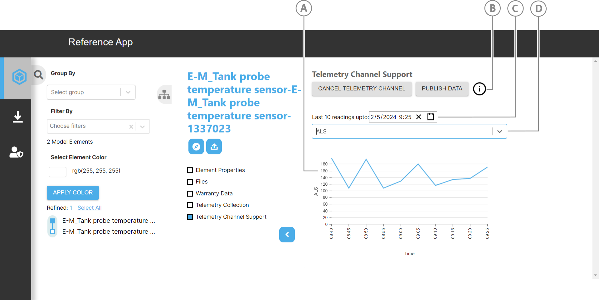 IafItemSvc.getRelatedReadingItems gets the "ref_app_iot_collection" telemetry collection's related readings: