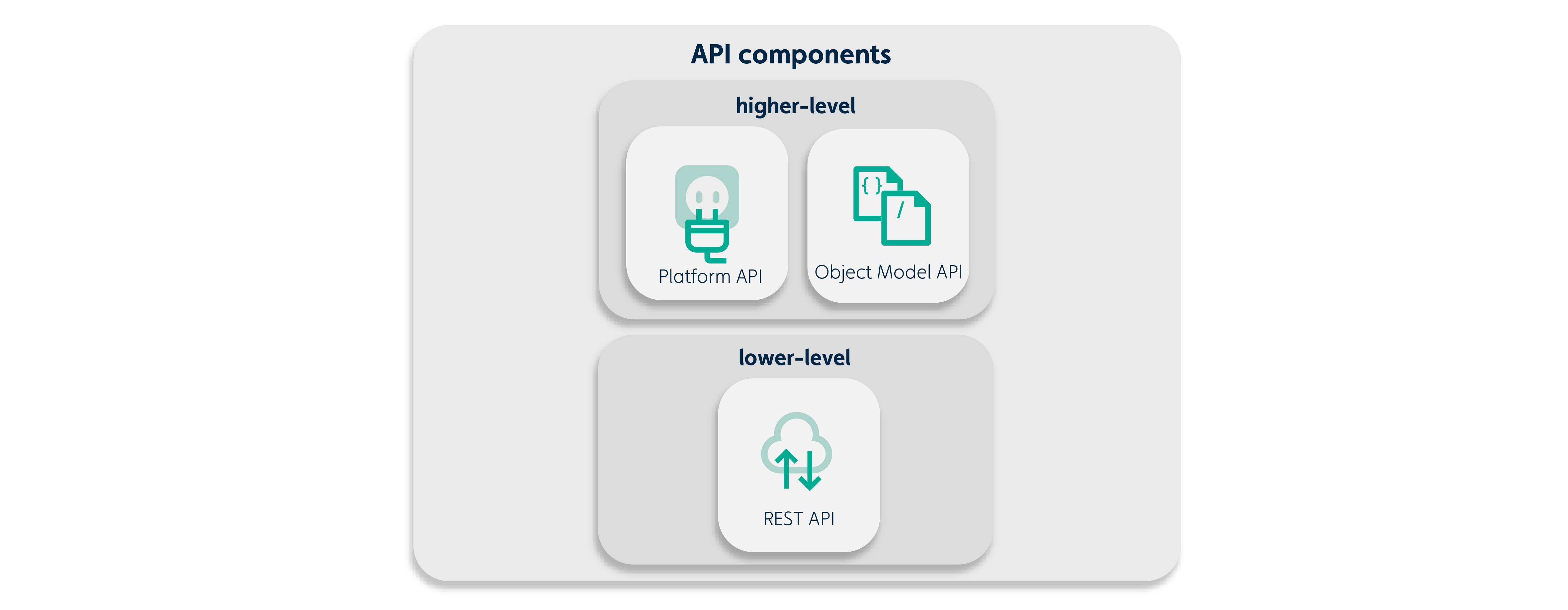 You can interface with the platform's back-end services directly with a REST API, or create your own JavaScript object model API that uses methods from the platform API.