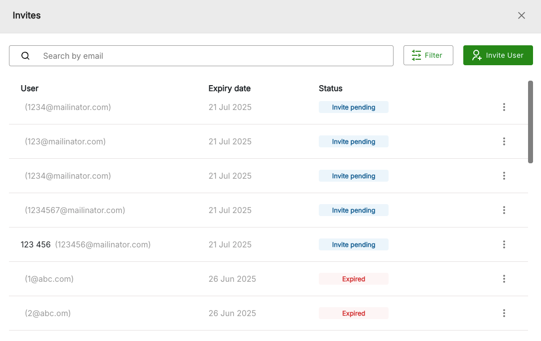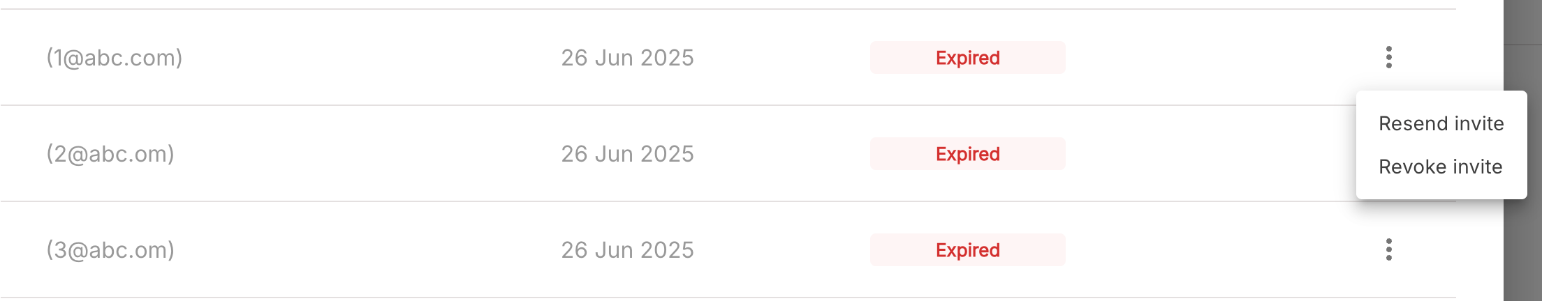 For certain invitations, a three-dot menu option is available where you can access further invite management functions. These extra functions are only for invitations which have the following status types: