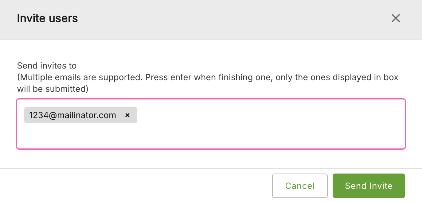 - The Invite users dialog box will open and you can enter the email of a user or several users that you want to invite. Press Enter after entering each email address.