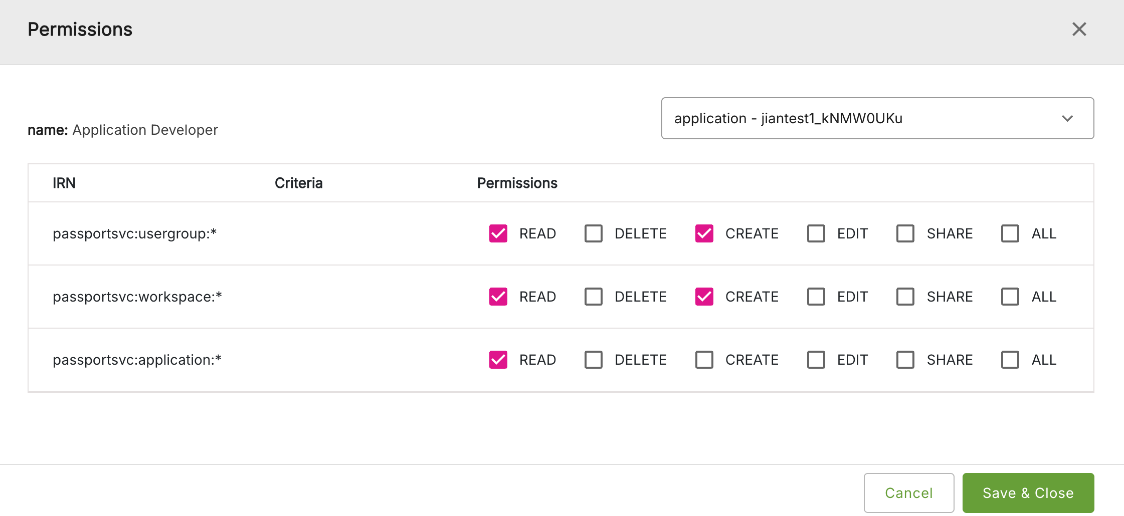 In the top-bar of the Permissions dialog, a drop-down menu is available which allows you to view permissions for the full range of user groups to which you have access. It will also list other user groups which are linked to the selected user group for an application.