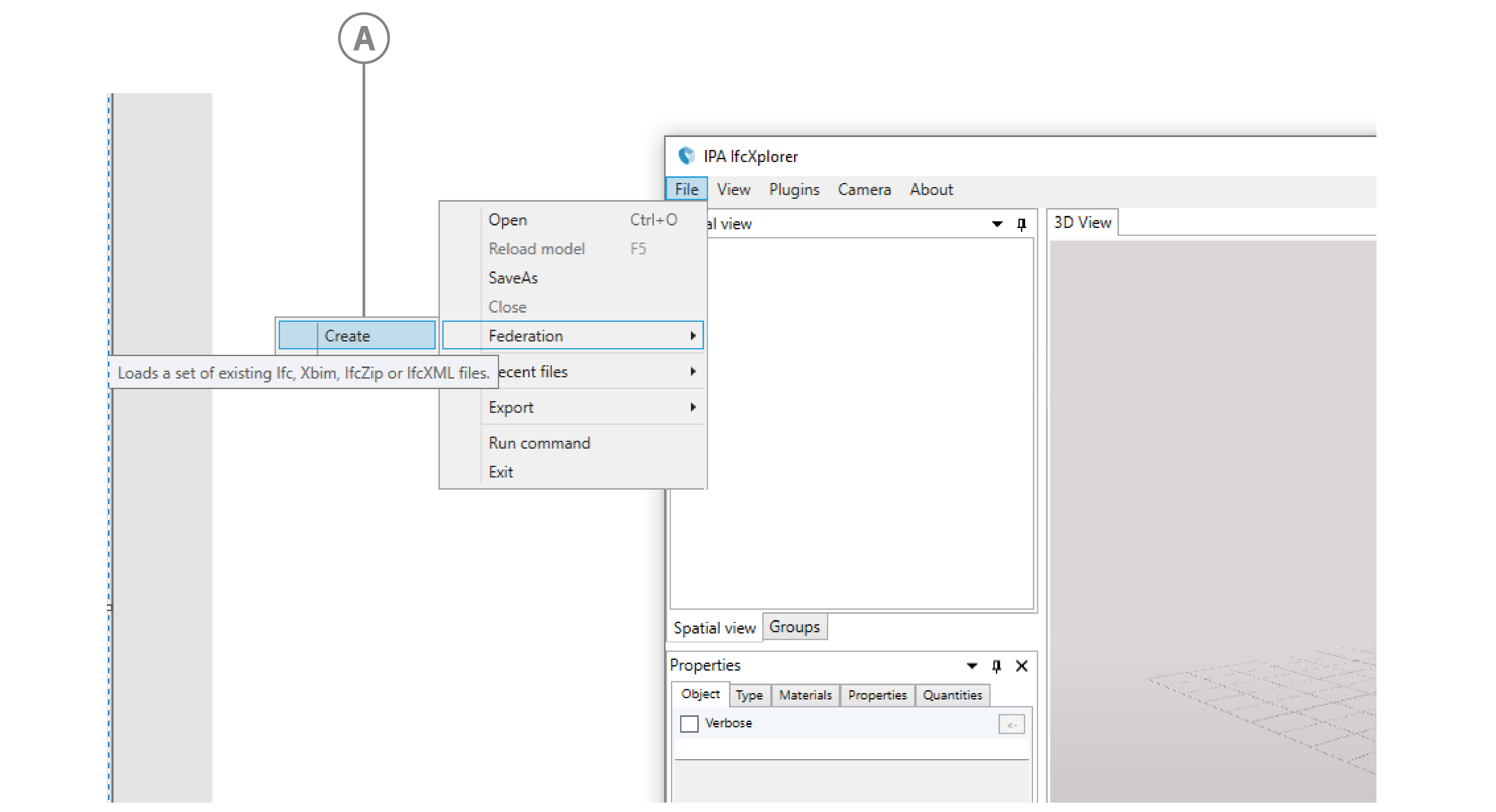 1. In your IFCXplore app, from the menu bar, click File, then, from Federation, click Create.