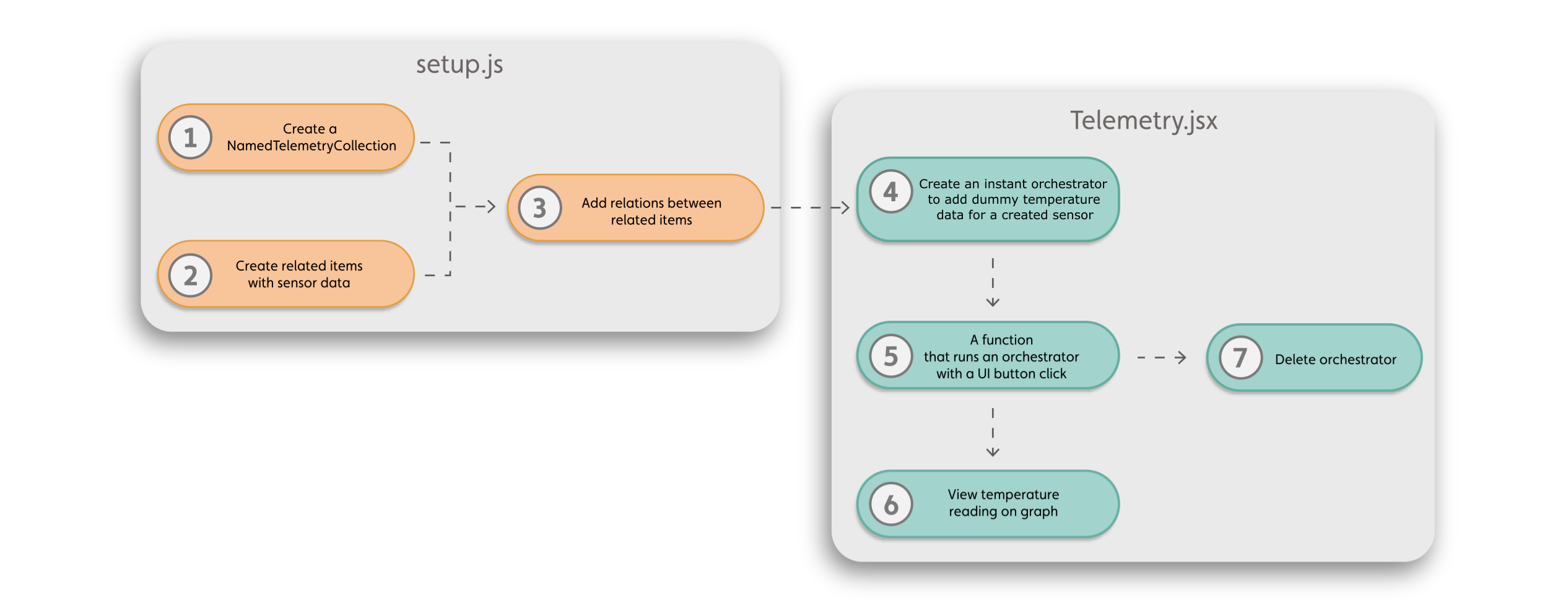 | 5 | When the user clicks a UI button, the handleCreate handler runs the orchestrator that gets telemetry readings. |
