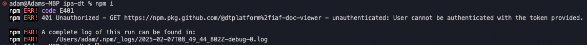 Frequently this will appear as an error stating that you do not have access to install a package from https://npm.pkg.github.com/@invicara.